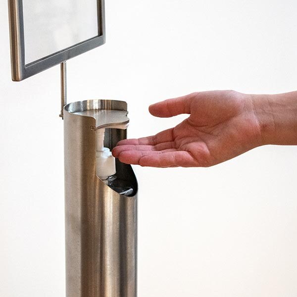 Hands-free sanitizing station helps keep you and your customers safe from germs and bacteria. Pump is foot pedal operated, ensuring you don't have to touch any germ-infested surfaces. includes 20 oz. refillable bottle (sanitizer not included).