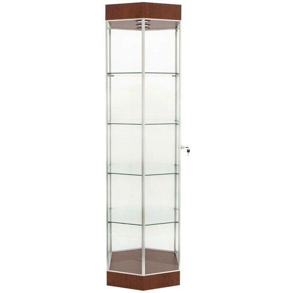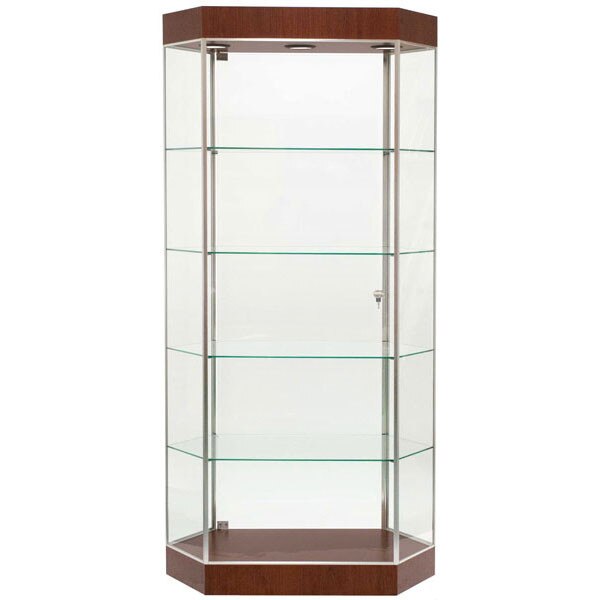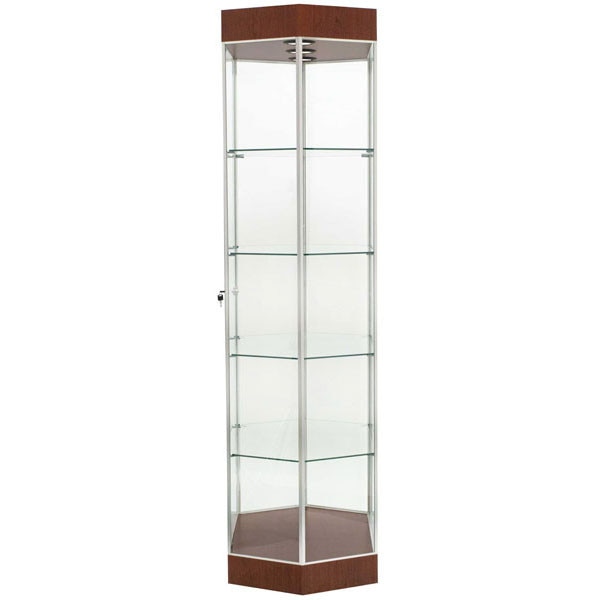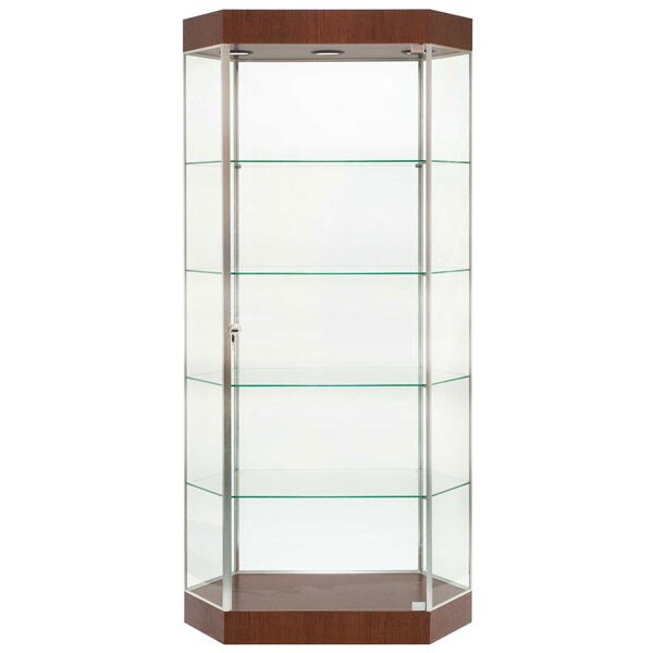 Deluxe Elongated Hex Tower Showcase features tempered glass exterior components with frameless locking door and 3 LED lights.