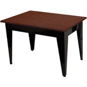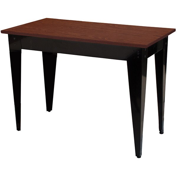 Table features a cherry melamine top with black metal frame and legs. Matches 62813 and 62815.
